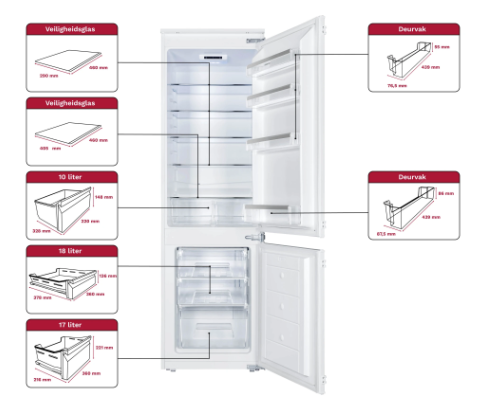 - Inhoud koelruimte 182L